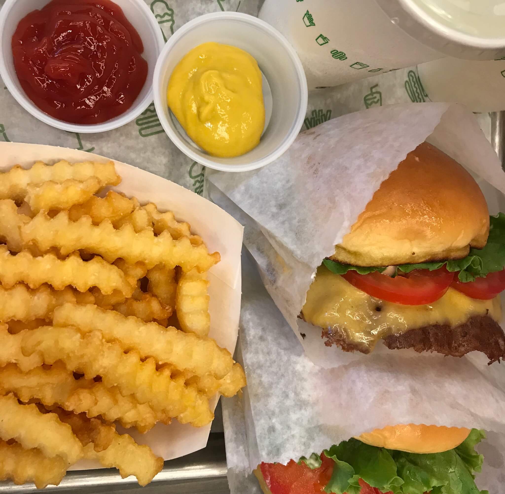 阪急梅田のSHAKE SHACKというハンバーガーのお店です!日本に全然ないお店なんですよ~~!写真撮るの下手で伝わりづらいですが、めちゃくちゃボリュームあって美味しかったです!!
