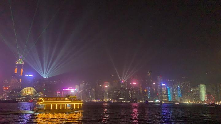 毎晩8時になるとヴィクトリア・ハーバーという湾を挟んだ香港島側と九龍島側のビルから色とりどりのレーザーが放たれ、たくさんのイルミネーションが点滅します!レーザーやイルミネーションの光がヴィクトリア・ハーバーに映るので、とても煌びやかな夜景で見ていて楽しかったです!